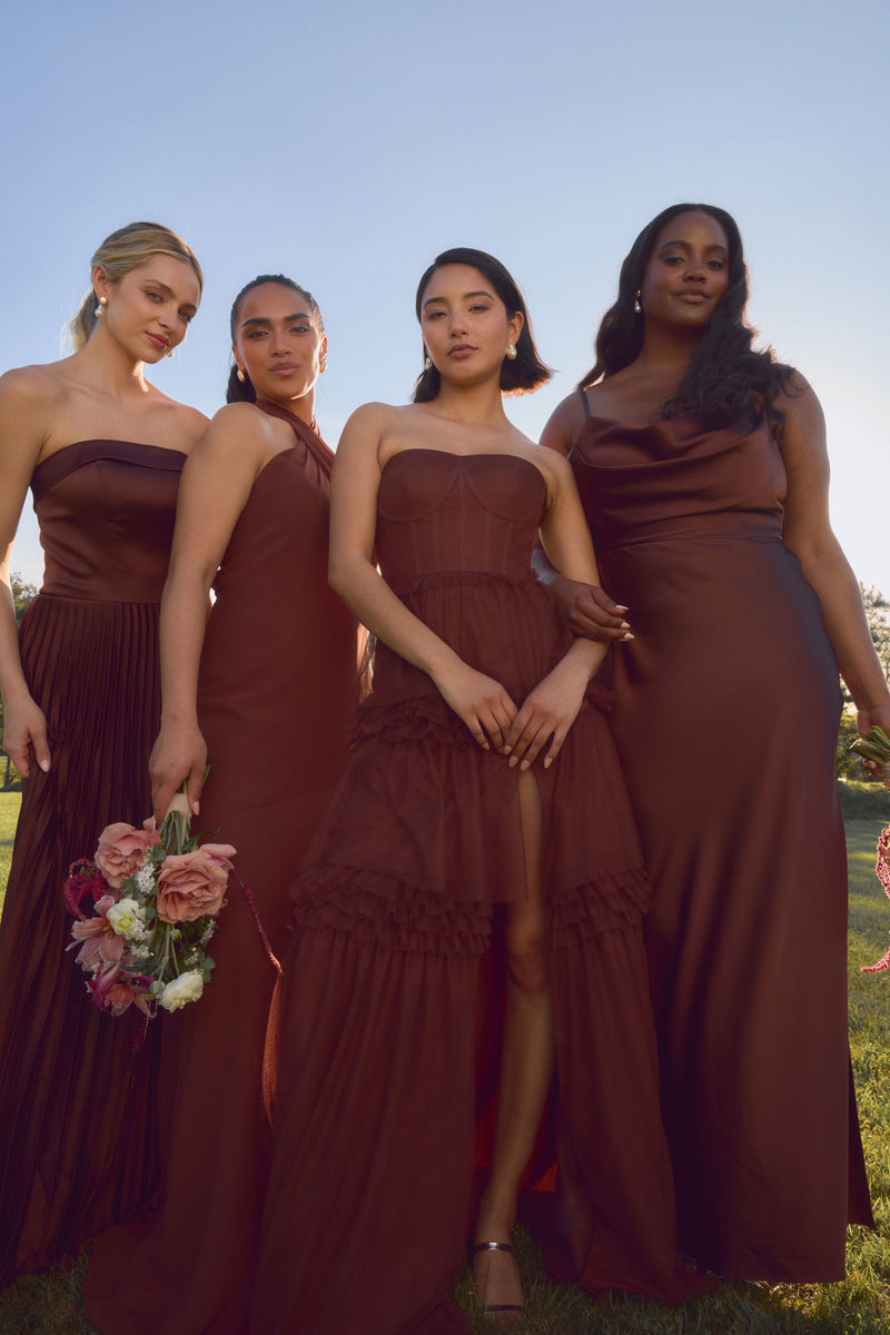 Discover the timeless elegance of Revelry’s bridal party collection, where style meets quality in every detail. Our thoughtfully designed dresses, jumpsuits, and suits are crafted from premium fabrics like chiffon, satin, velvet, crepe, and tulle, ensuring a refined look for every wedding vision. Brides admire our rich, versatile color palette, while bridesmaids and groomsmen appreciate our modern silhouettes, inclusive sizing, and impeccable craftsmanship.