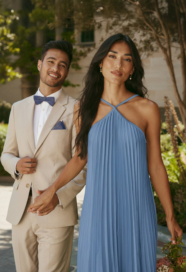 For a summer celebration, embrace the effortless beauty of airy chiffon and sleek satin. Spring weddings come to life with soft pastels and muted tones, creating a romantic, mix-and-match aesthetic. As the seasons change, fall and winter soirées shine with the luxurious depth of velvet gowns and impeccably tailored suits in rich hues like deep olive and terracotta rust.