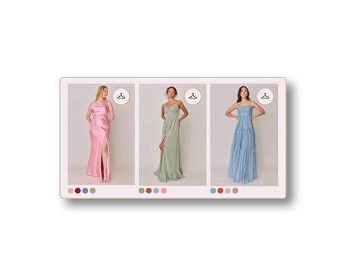 Shop our selection of color swatches and fabric samples to truly envision your wedding party color and style for your big day!