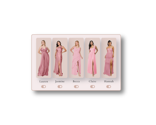 Experiment with your bridal party lineup, designate specific dresses for each of your bridesmaids, and send them reminders all through our online showroom.